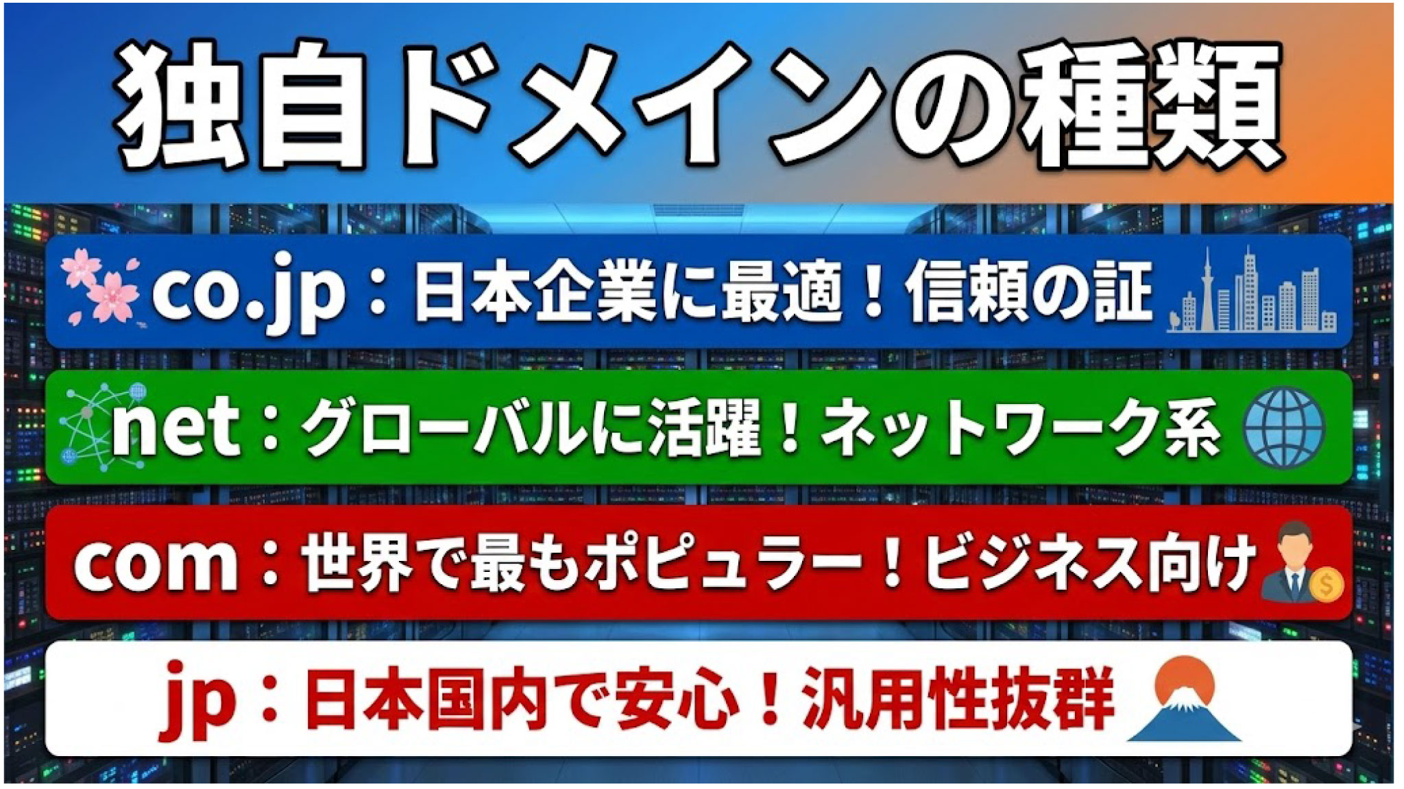 独自ドメインを使ったWEB(ホームページ、ブログ)の公開が当たり前になった現代では、名刺に書かれているメールでも独自ドメインだと安心感を覚えるようになっています。ドメインは特にビジネスをする際に気にしたい部分でもあります。SSL暗号化する時にも独自ドメインを用意する事になります。いわば必要不可欠なものとなってきました。